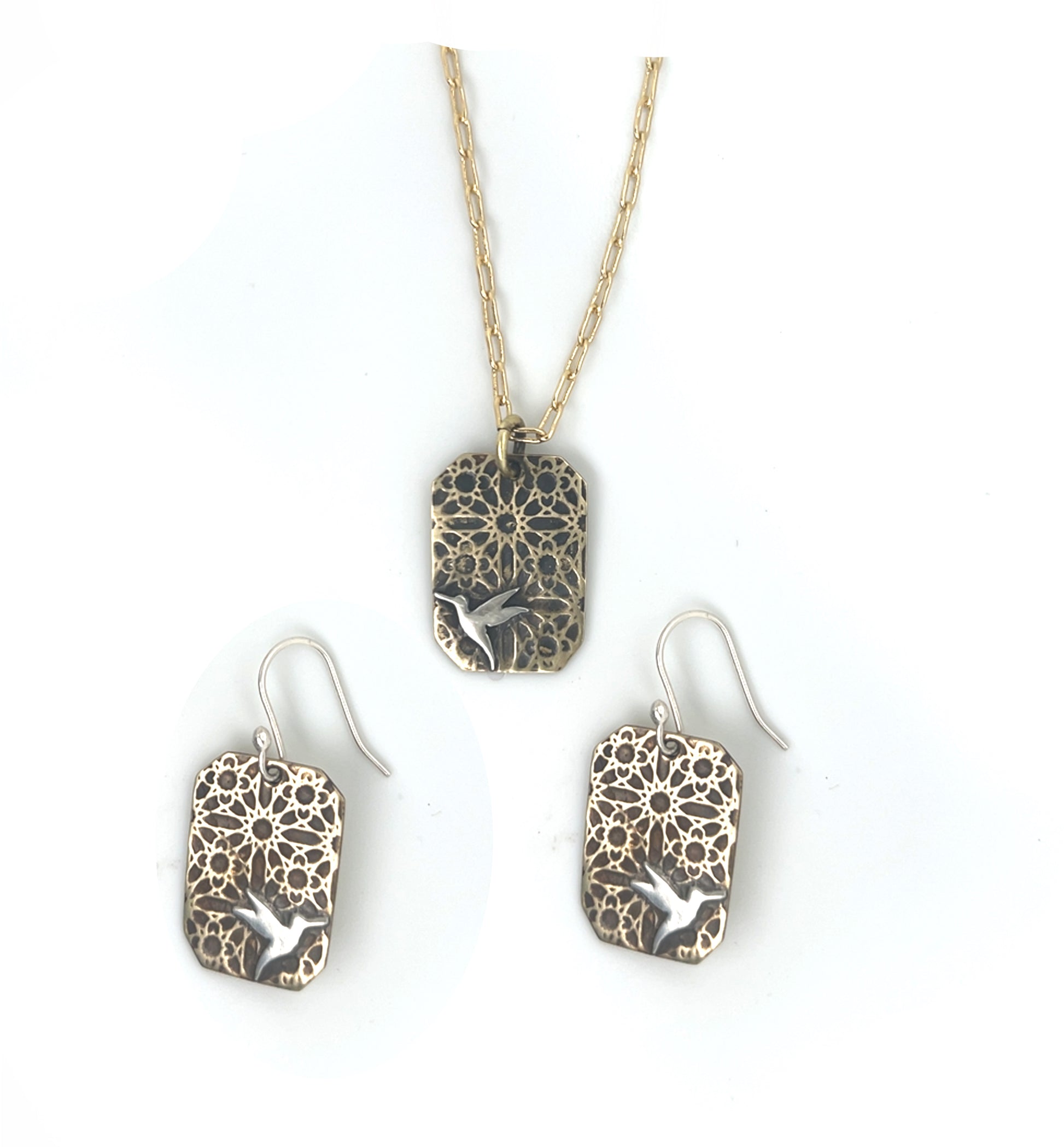 Embrace the captivating rhythm of the Art Deco era with our Starburst Embossed Earrings with mirror matching hummingbirds on top. Inspired by the bold geometric shapes and intricate details of the roaring twenties, these earrings offer a modern take on timeless elegance.