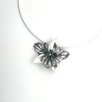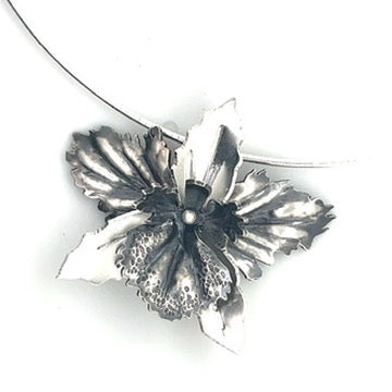 This exceptional metal orchid corsage is a testament to the power of traditional craftsmanship. Each year Pattie comes out with one to two collectible flowers. Wear a piece of art that reflects the dedication and skill of a true metalsmith.