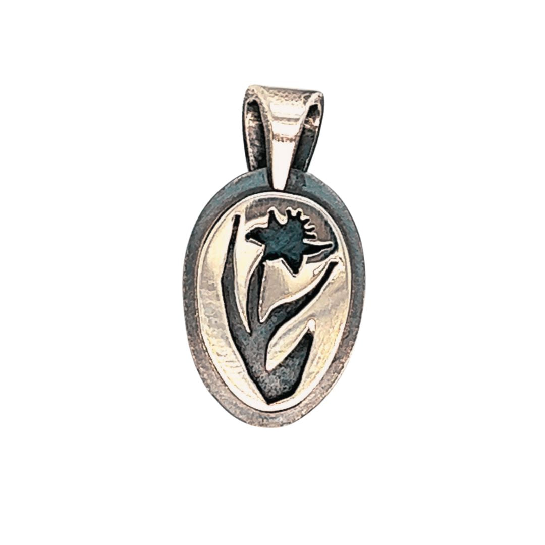 Hand-Cut Miniature Daffodil Silhouette Pendant: Exquisite Micro-Sculpted Jewelry