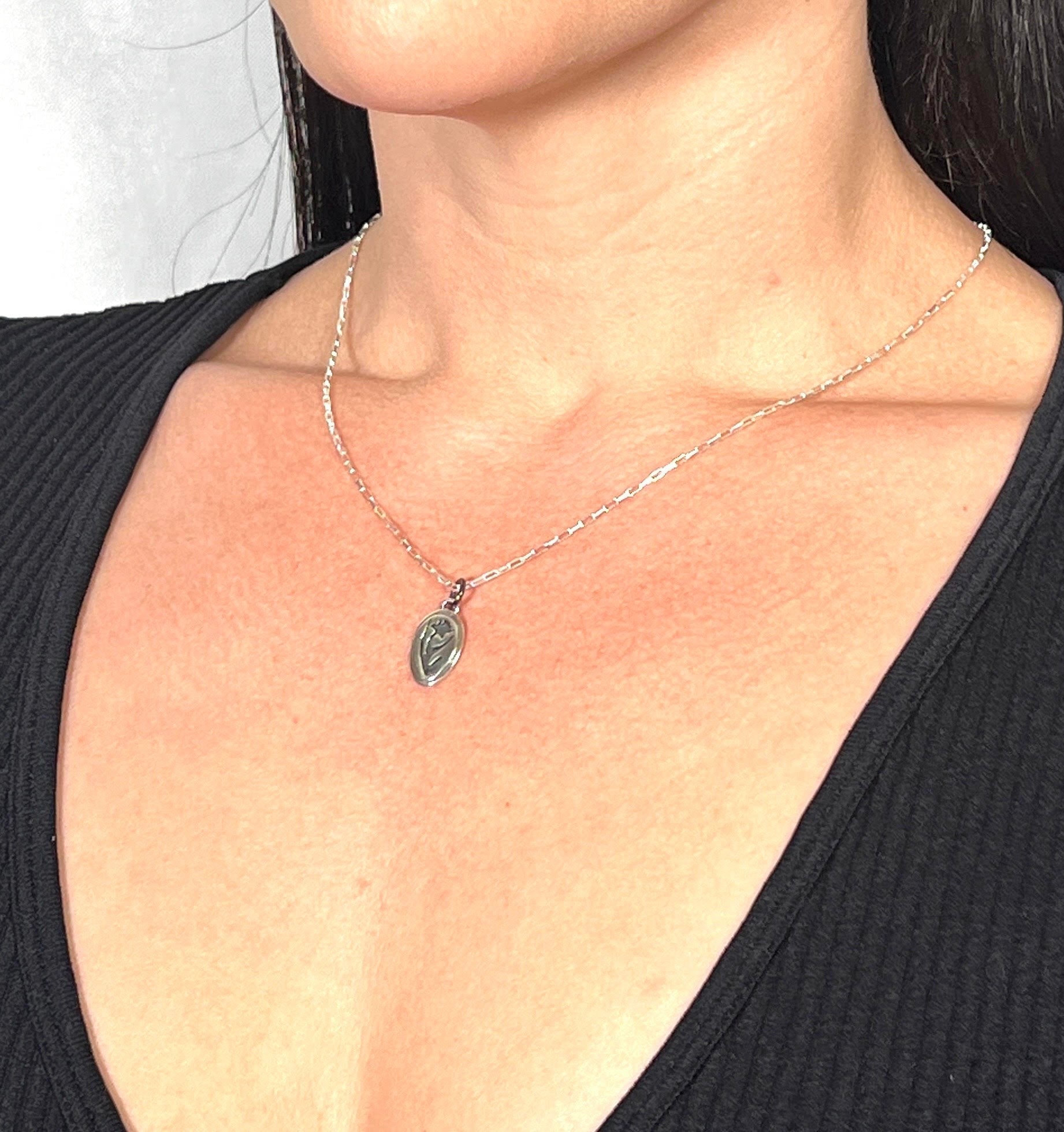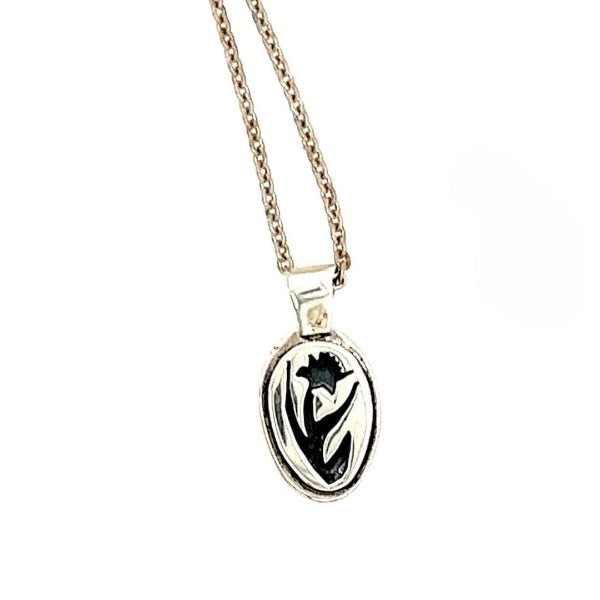 Celebrate the beauty of spring with our exquisitely crafted Hand-Cut Miniature Daffodil Silhouette Pendant. Each pendant is meticulously hand-cut using a jeweler's saw blade, just three human hairs thick, ensuring unparalleled precision and delicate detail. The intricate daffodil silhouette captures the elegance of this iconic flower, making it a perfect symbol of renewal and joy. These pendants are more than just jewelry; they are tiny works of art, showcasing the skill and passion of the artisan. The delicate cutouts create a stunning, light-catching effect, adding a touch of whimsical charm to any outfit. Perfect for nature lovers and those who appreciate handcrafted, unique jewelry.