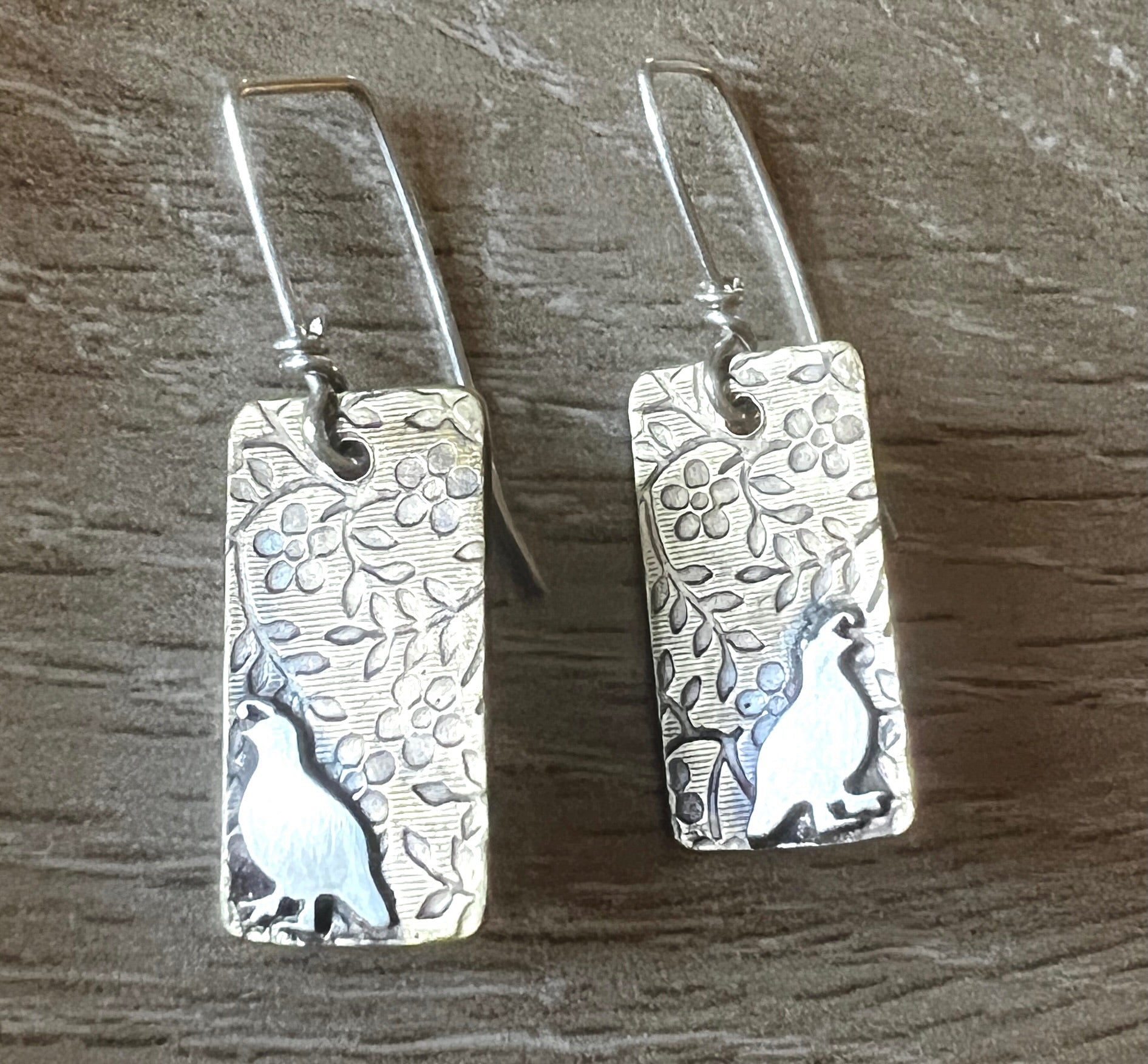 Floral Earrings with Quail Fauna Antiquitas Design #9