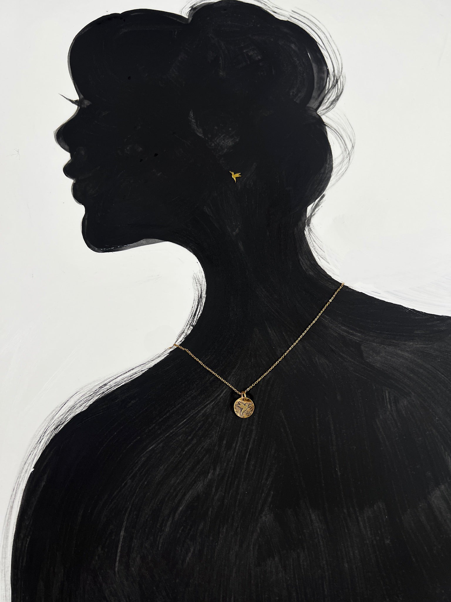 Discover the timeless beauty of the Hummingbird Charm Necklace from the Fauna Antiquitas collection, which celebrates the elegance of ancient animals. This delicate round charm features a gracefully hand cut hummingbird, symbolizing joy, freedom, and energy. With a flower pattern background.
