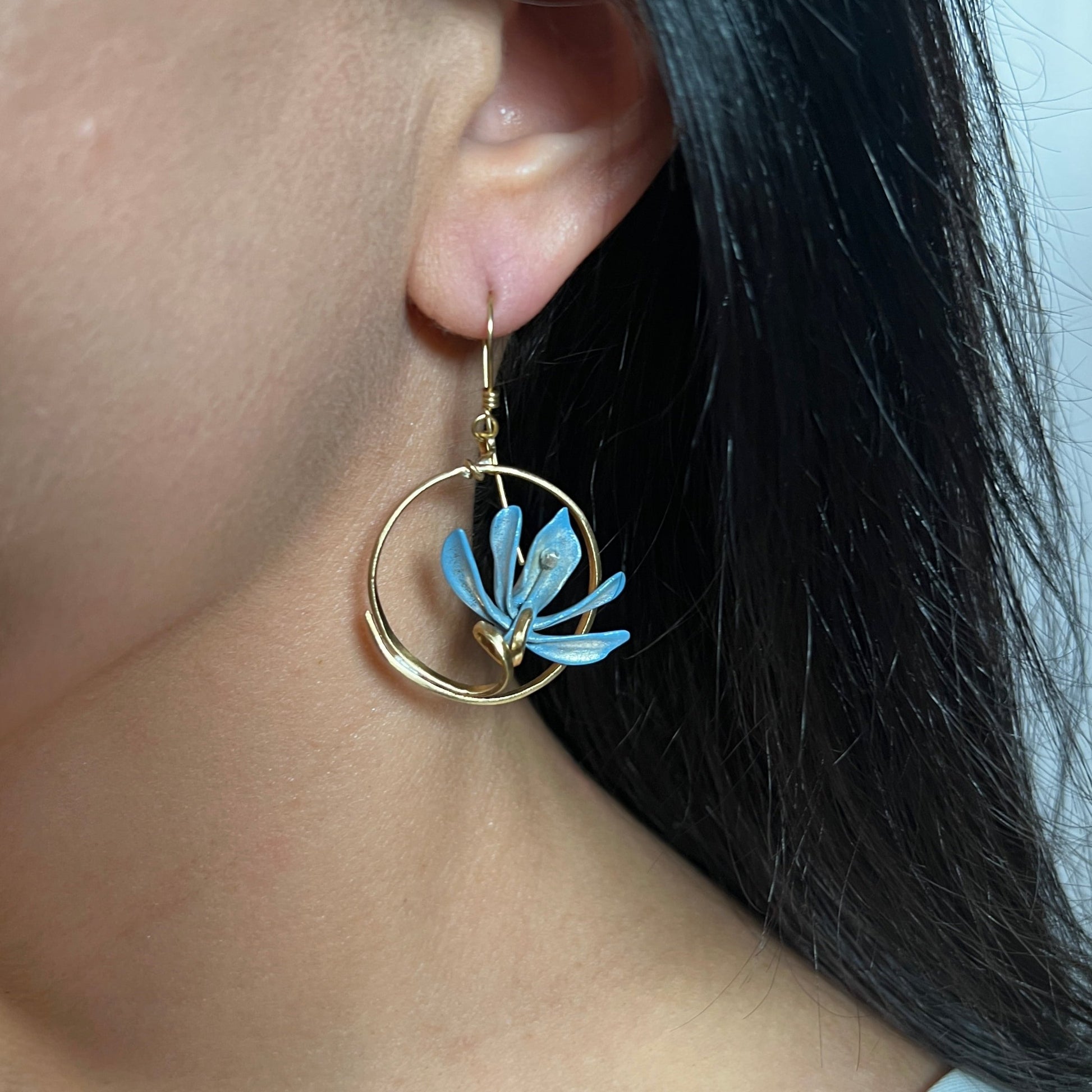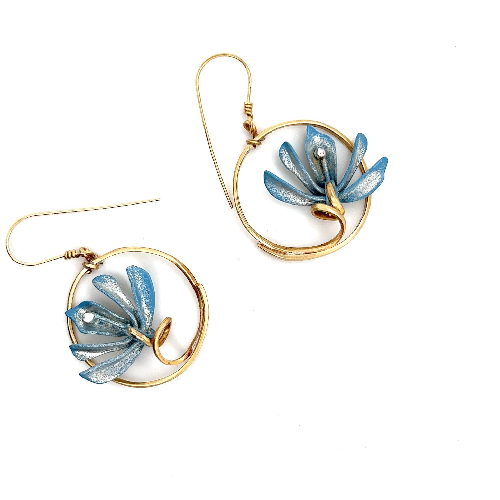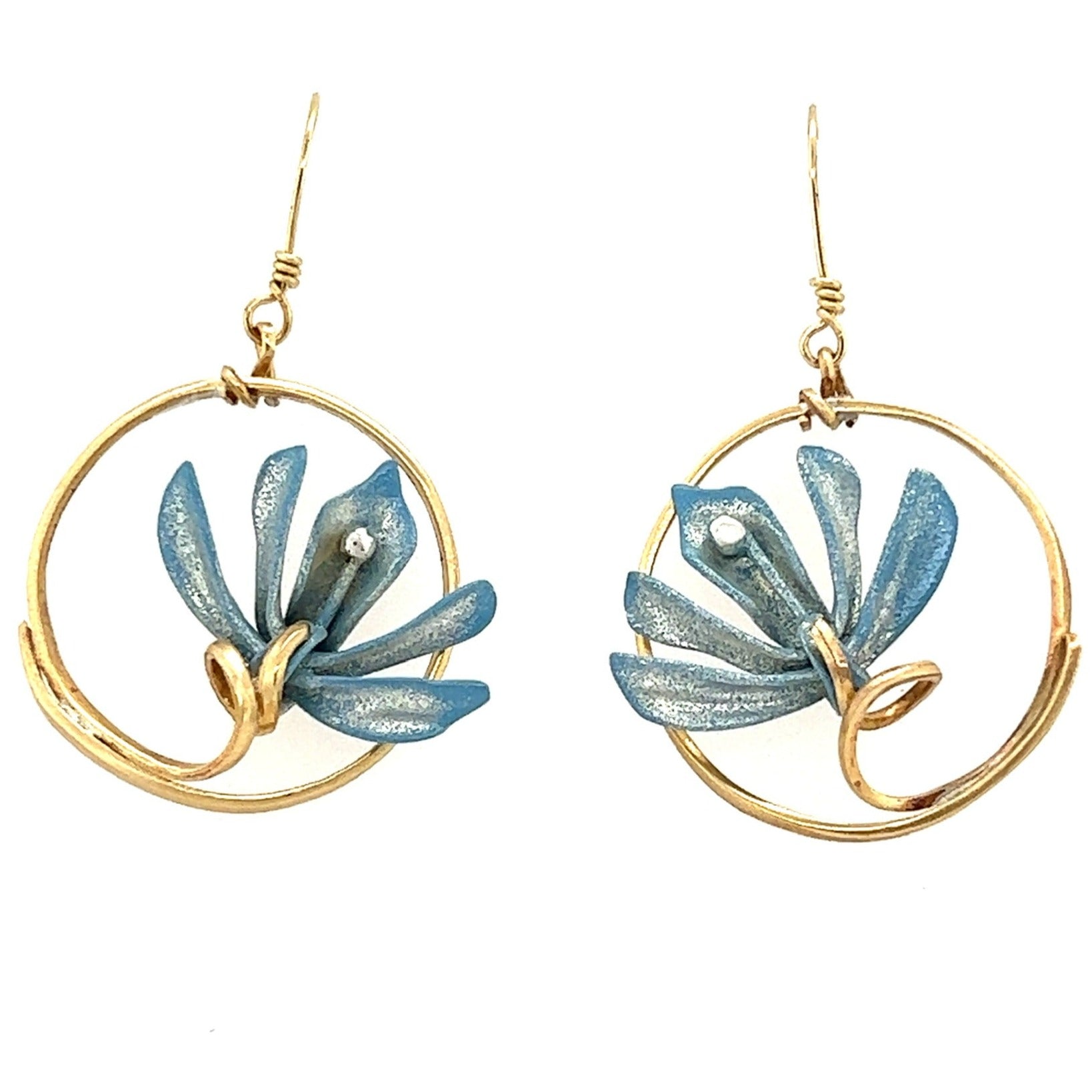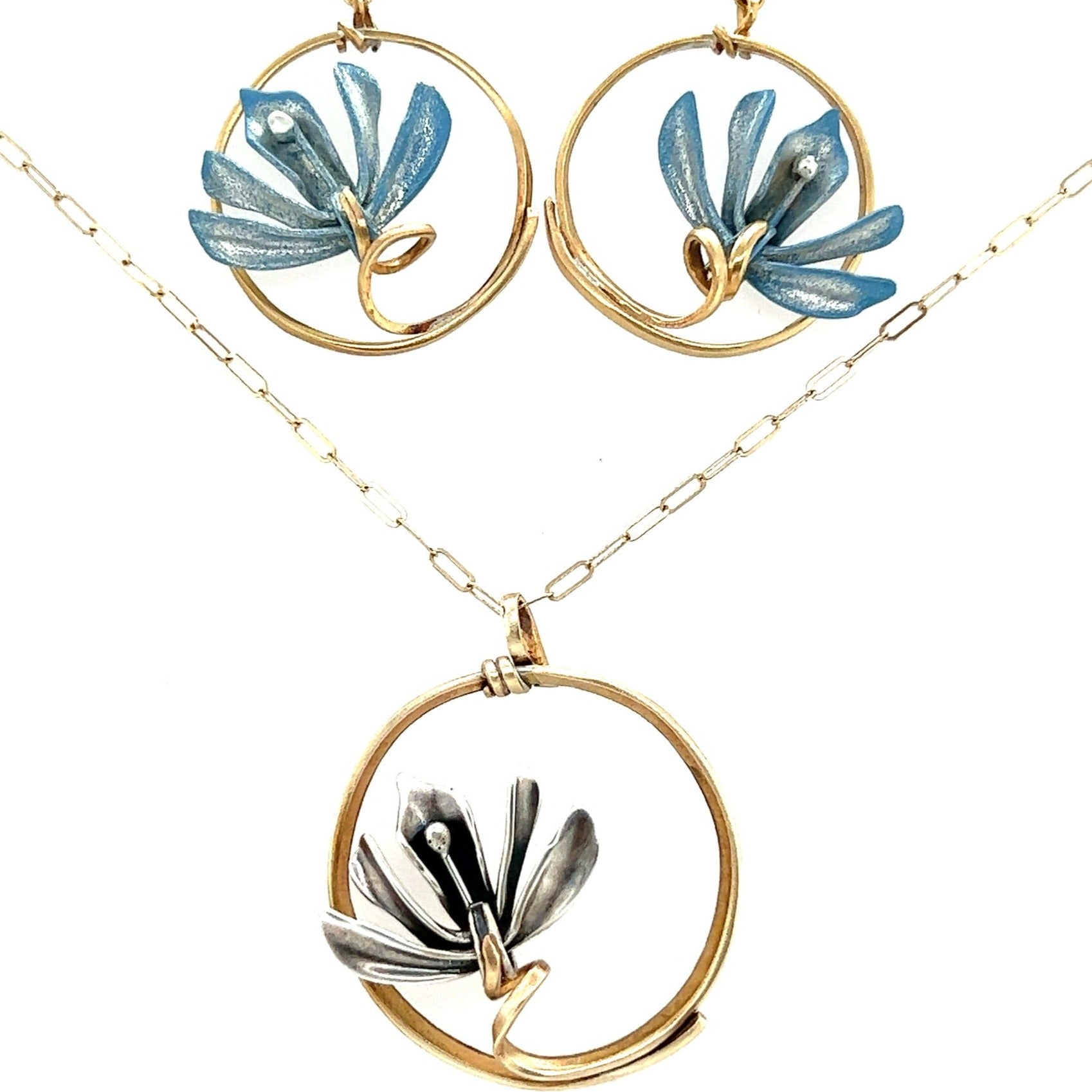 Embrace the blossoming beauty and spiritual significance of the lotus flower with these captivating, handmade earrings. Each unique piece features a sculptural 3D mirror matching lotus pendant, handcrafted using the ancient anticlastic raising technique, resulting in a mesmerizing depth and dimension unlike any other jewelry.