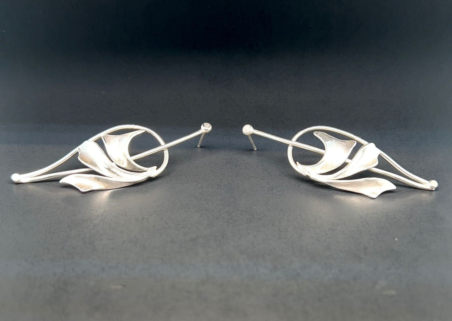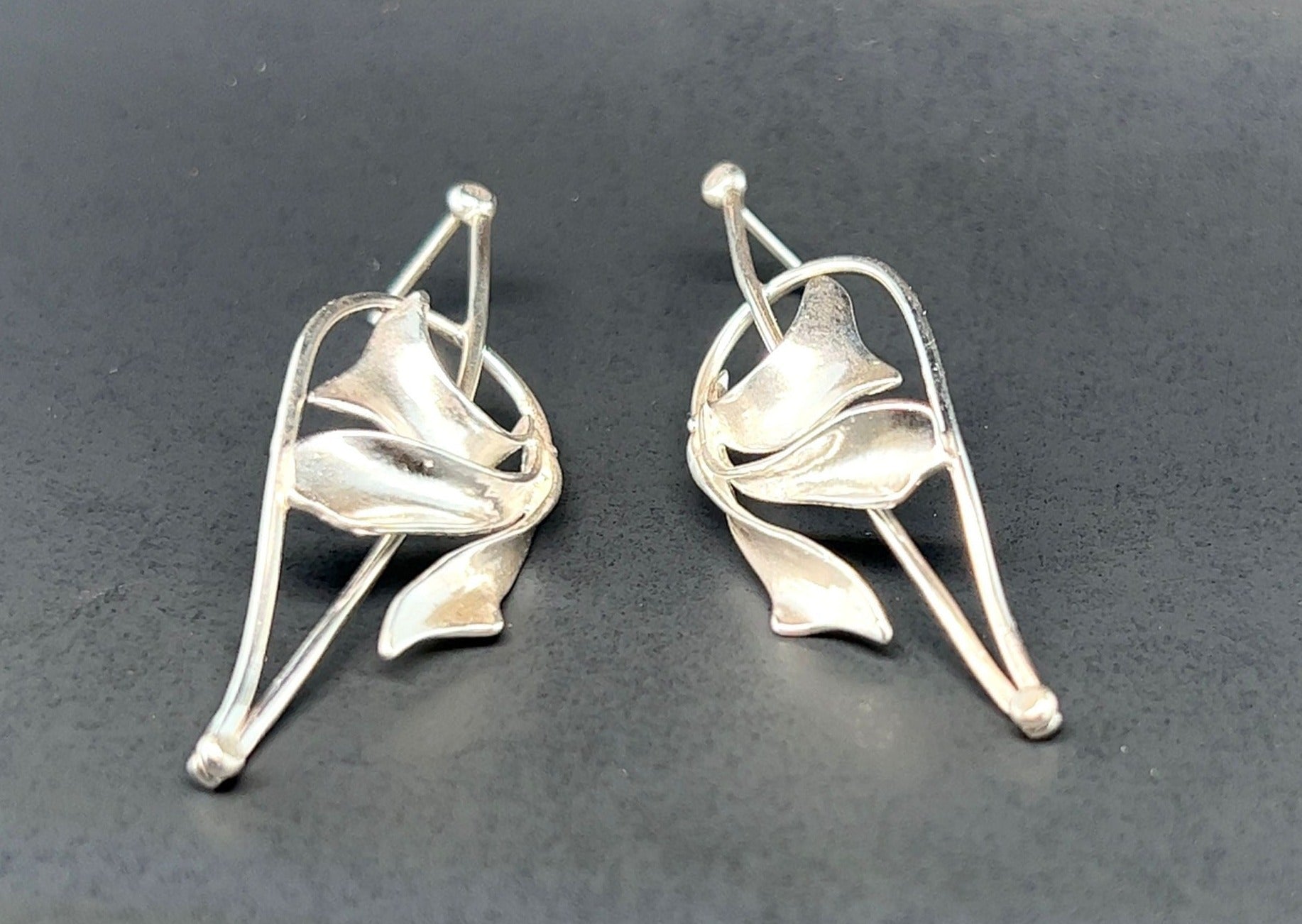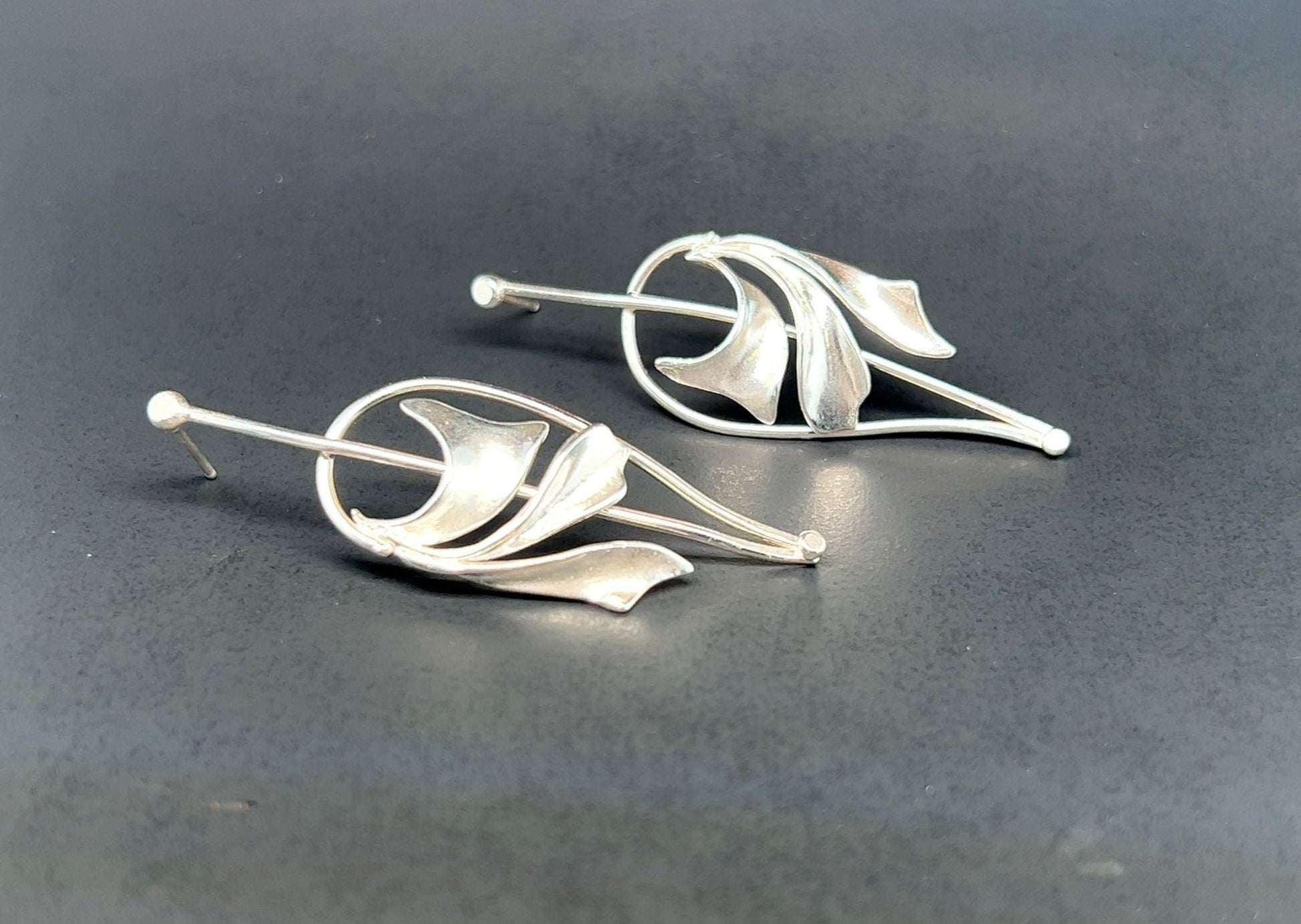 These exquisite Magnolia Flower Earrings are a testament to the timeless beauty of nature and the artistry of skilled craftsmanship Pattie crreates. Inspired by the delicate forms of Art Nouveau tiles, these earrings are meticulously handcrafted using the ancient technique of anticlastic raising. The result is a pair of mirror-matching earrings that capture the ethereal grace of magnolia blossoms in stunning detail. Each petal is carefully formed, creating a three-dimensional flower that seems to dance and sway with movement. The earrings are made from high-quality materials, ensuring both durability and a luxurious feel. Whether you're dressing up for a special occasion or adding a touch of elegance to your everyday look, these Magnolia Flower Earrings are sure to make a lasting impression.