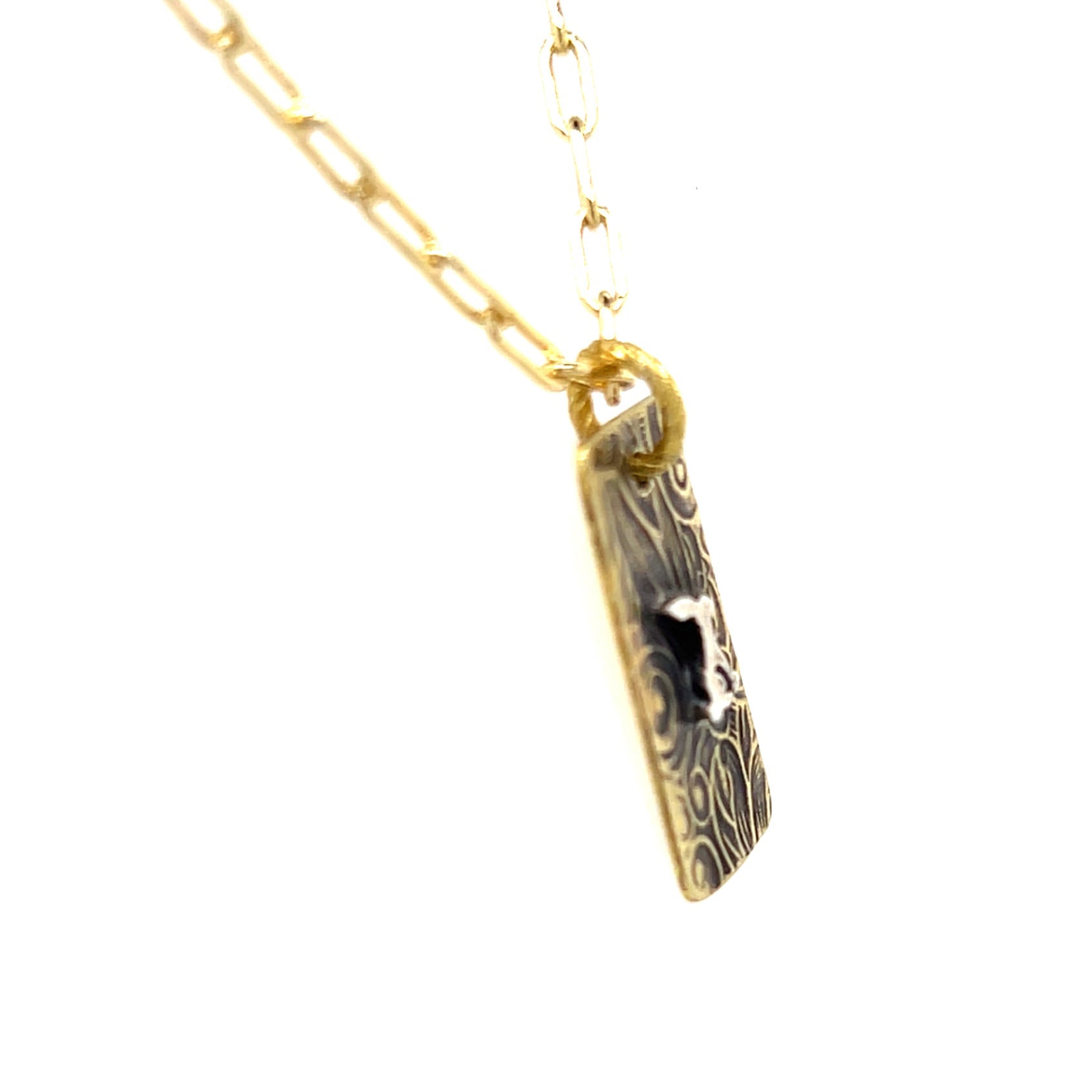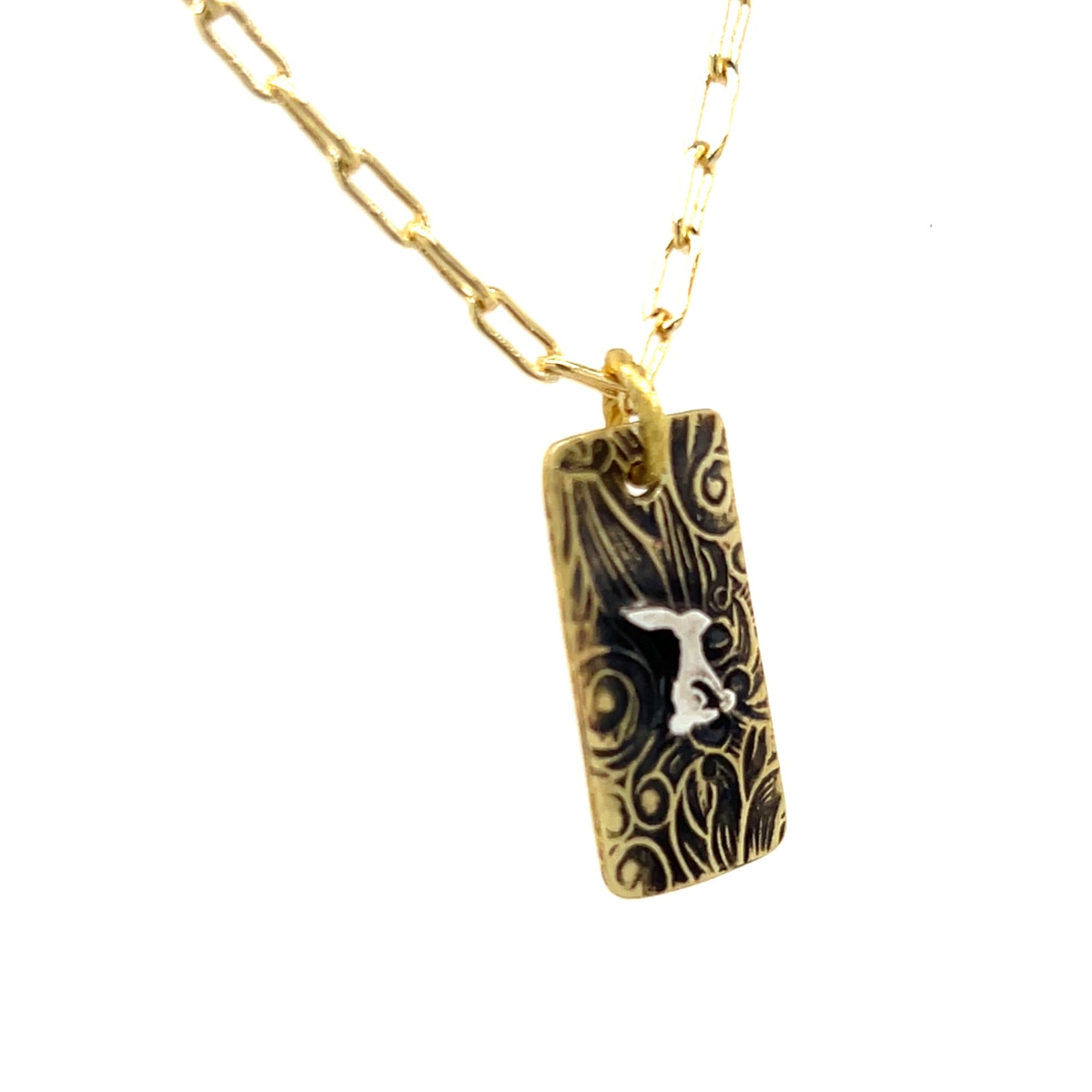 Art Nouveau Embossed Rectangle Necklace with Jackrabbit