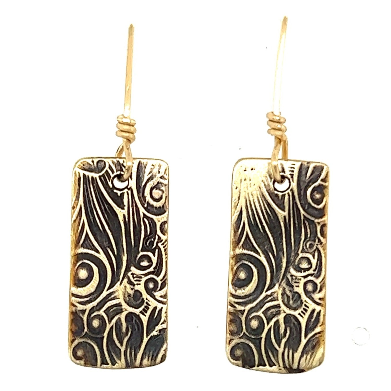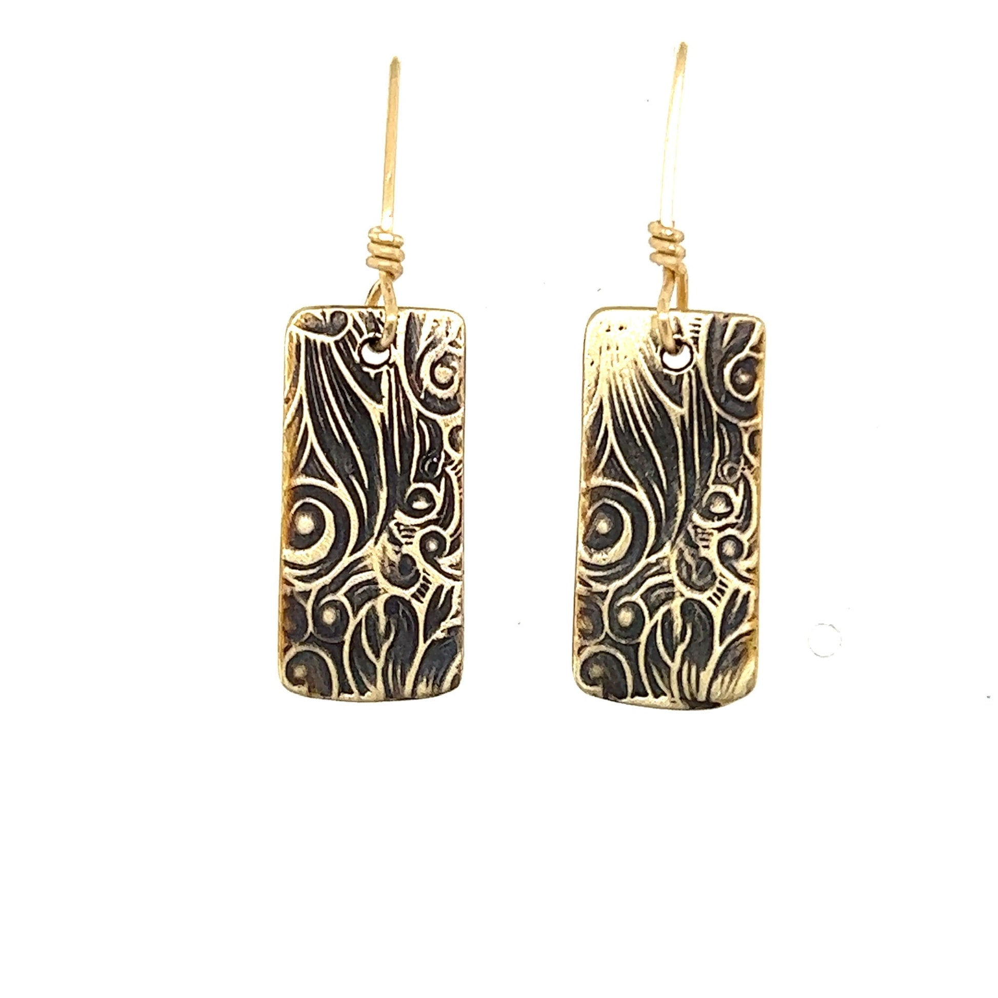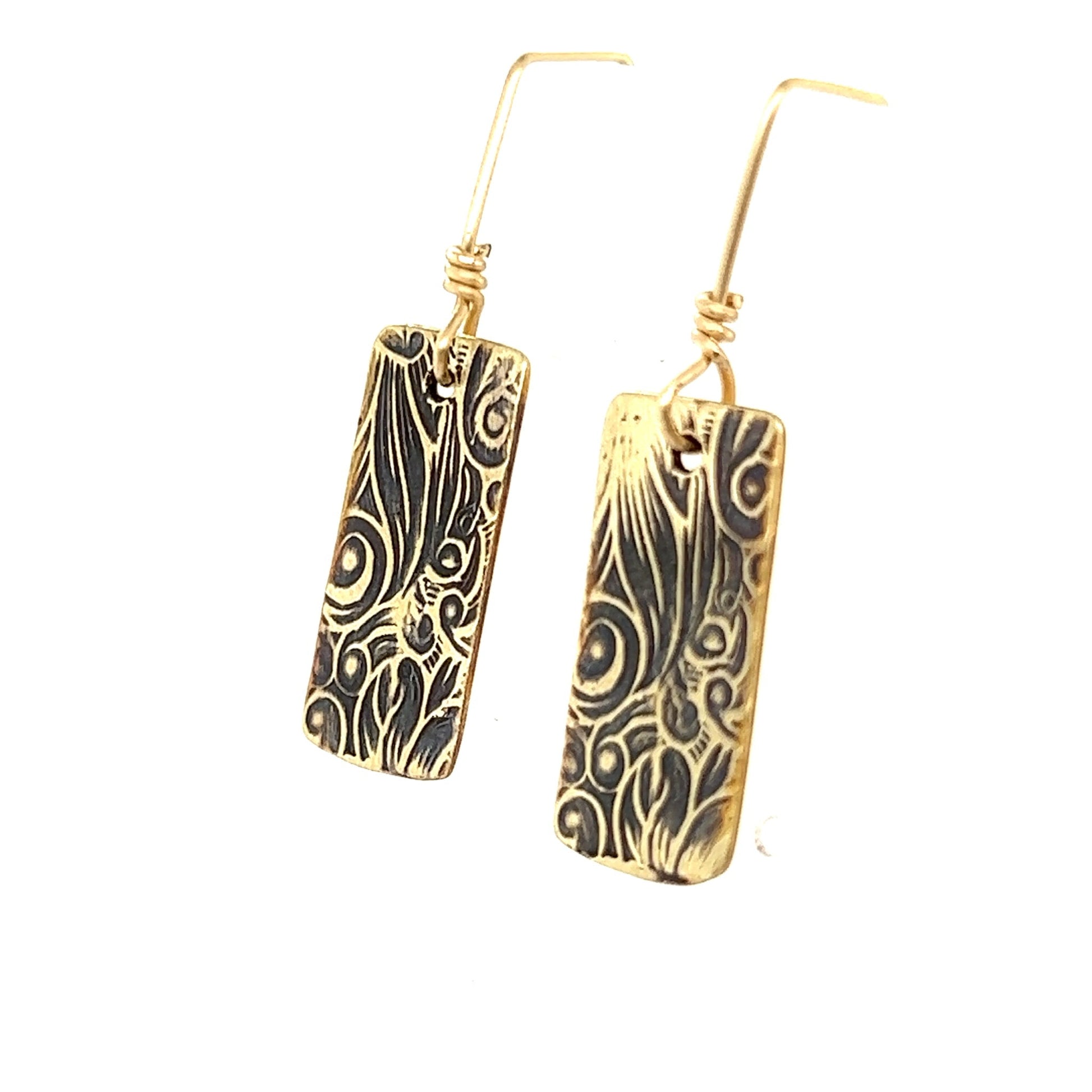 Art Nouveau Embossed Rectangle Dangle Earrings