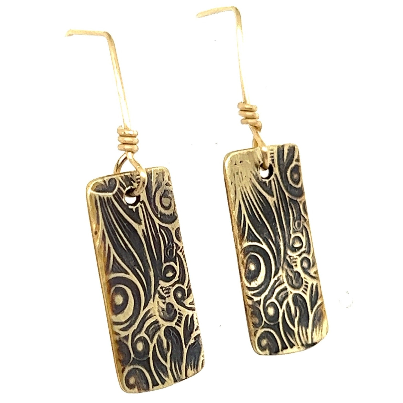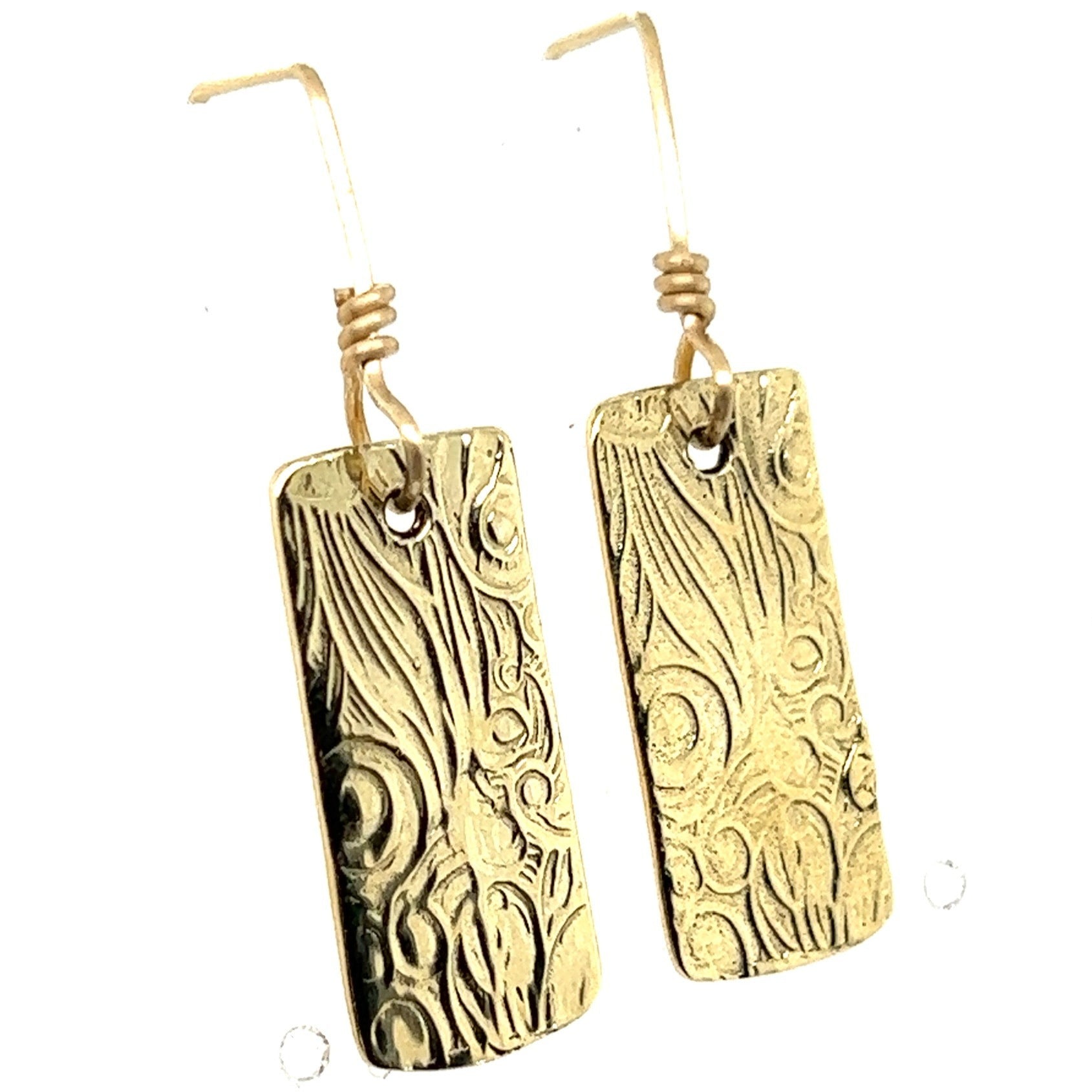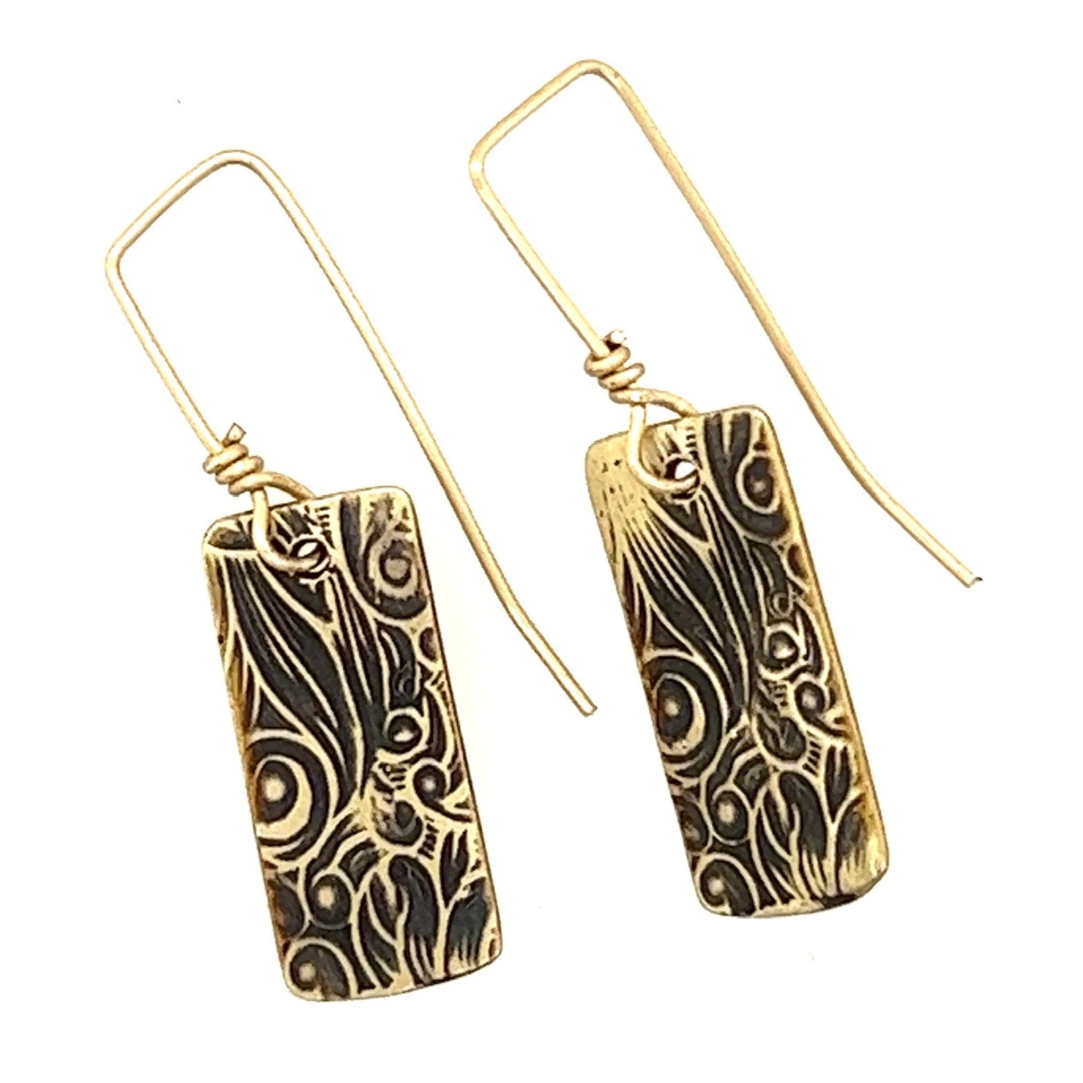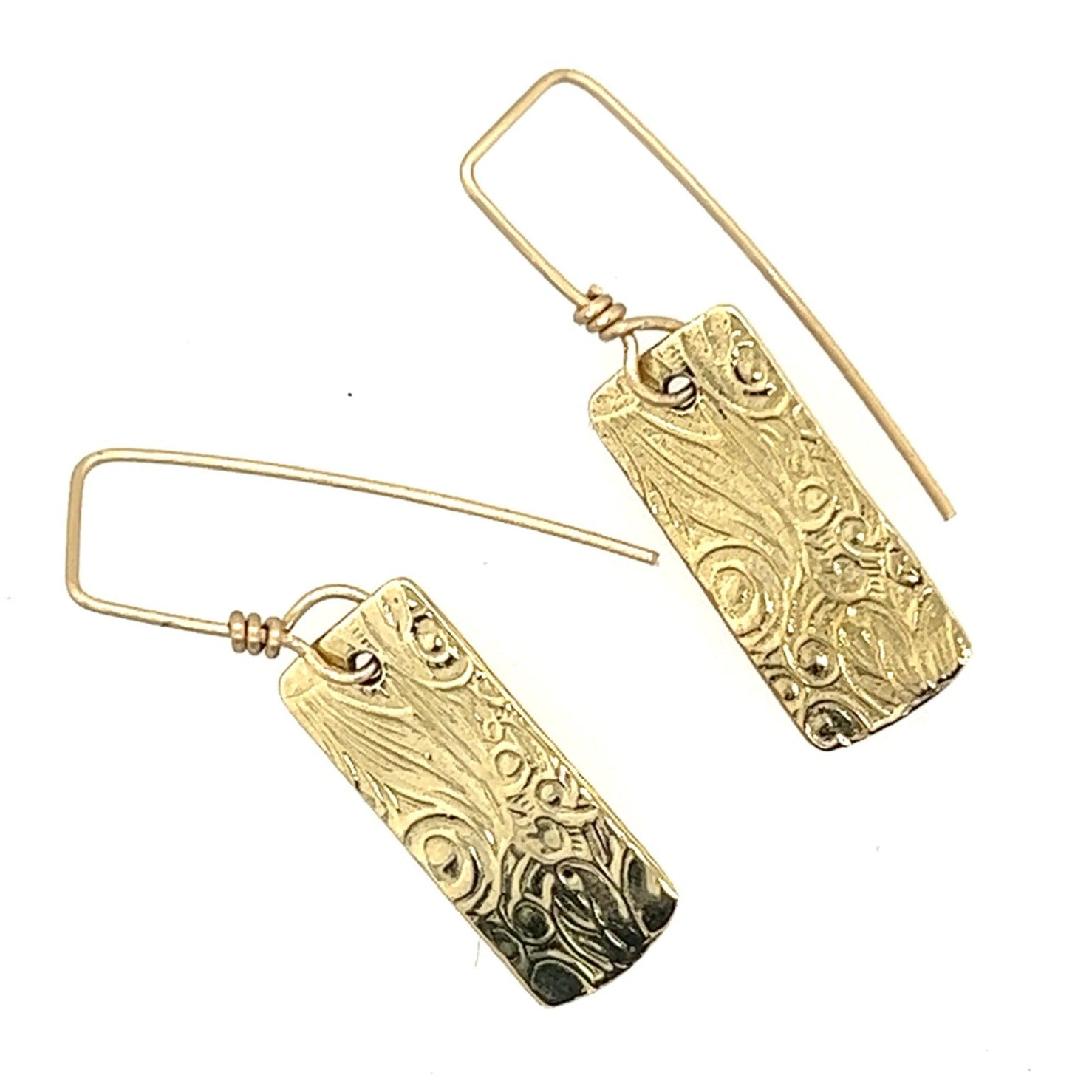 Art Nouveau Embossed Rectangle Dangle Earrings