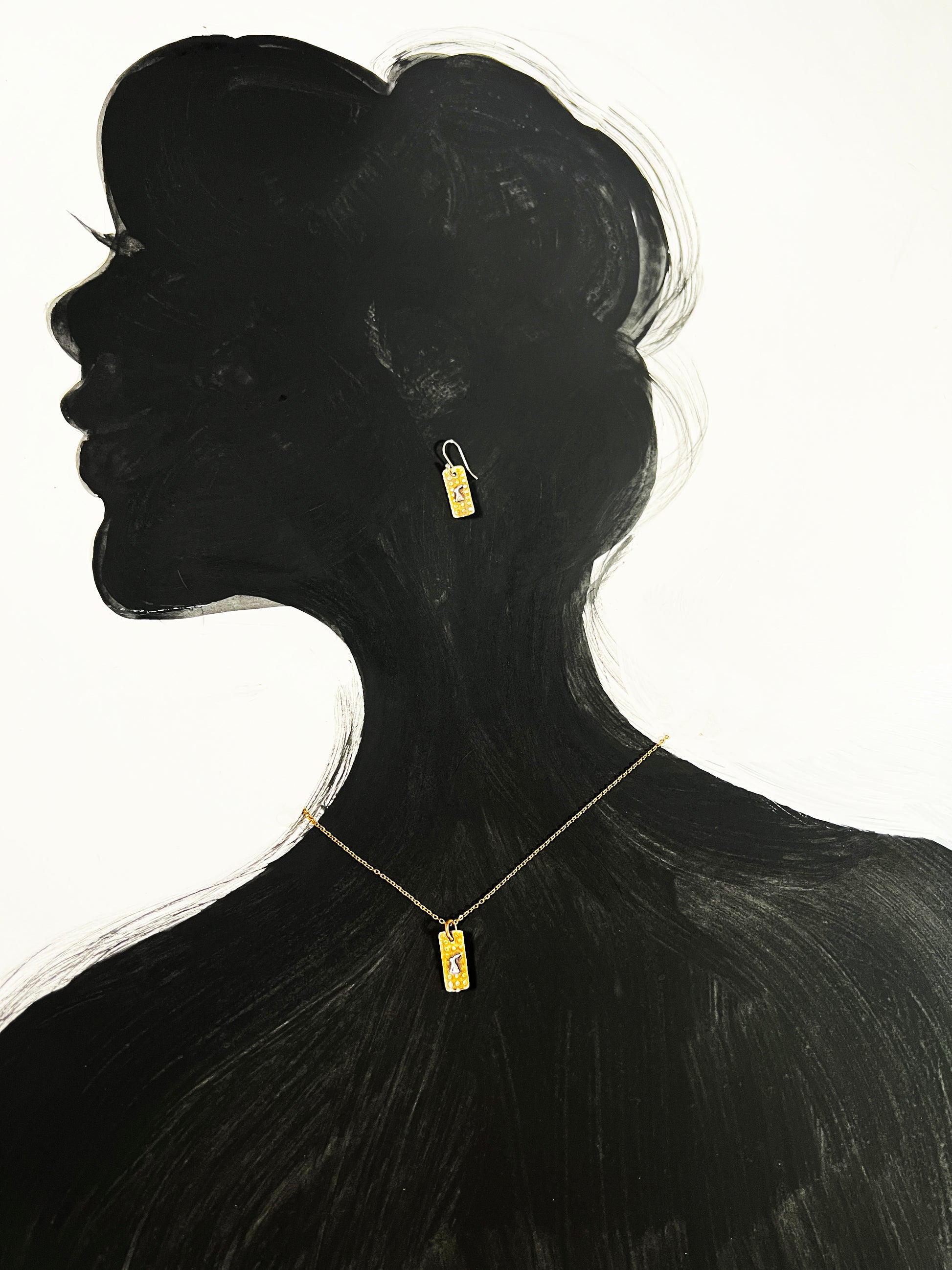 Enhance your wardrobe with our rectangular pendant necklace featuring a delightful jackrabbit design in polka dots. It's the ideal accessory to add a charming touch to any outfit.
