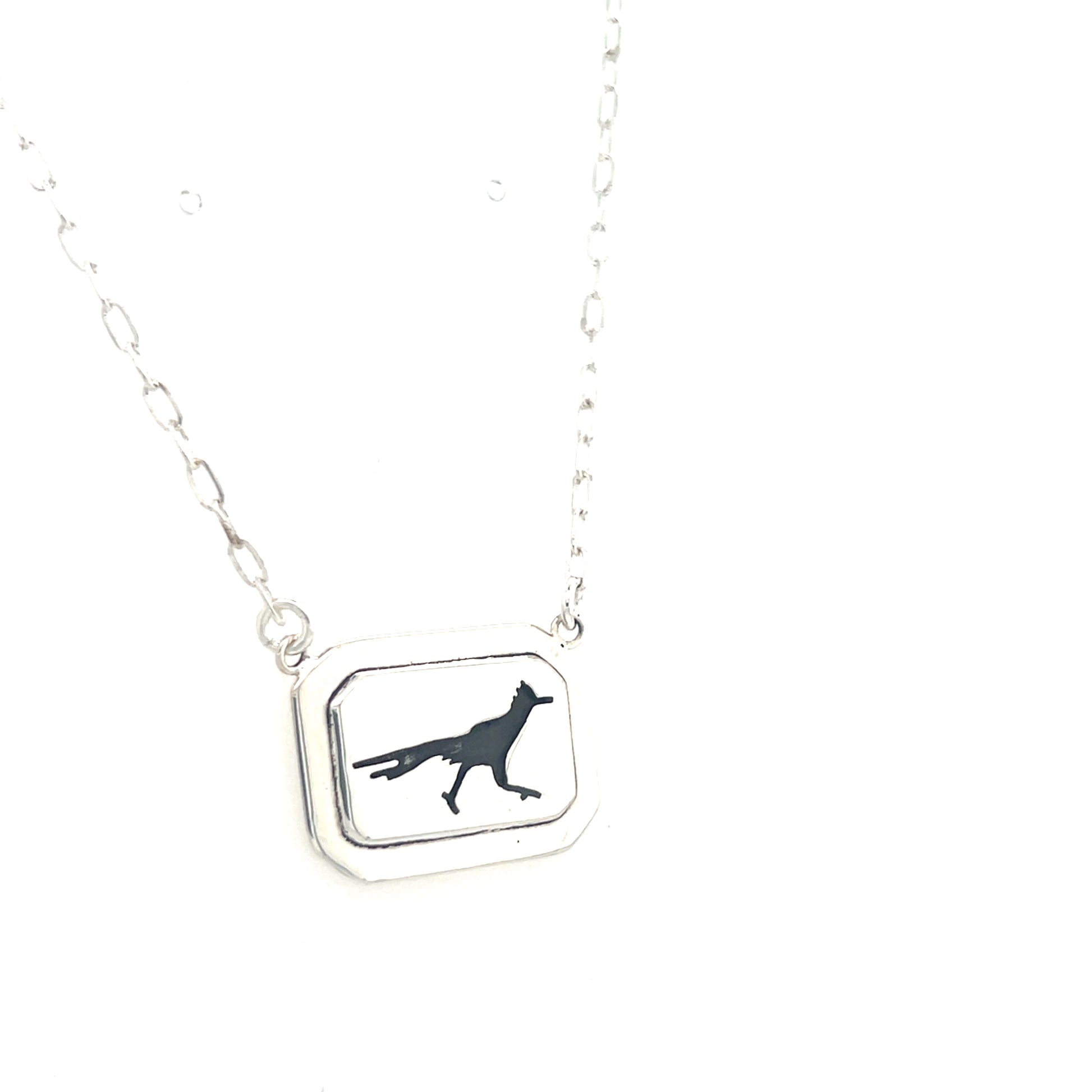 Capture the spirit of the Southwest with this delightful hand-cut roadrunner necklace. Each piece is carefully crafted, showcasing the iconic silhouette of this swift and spirited bird. Wear a little piece of the desert's magic and let the roadrunner's energy accompany you on your own adventures.