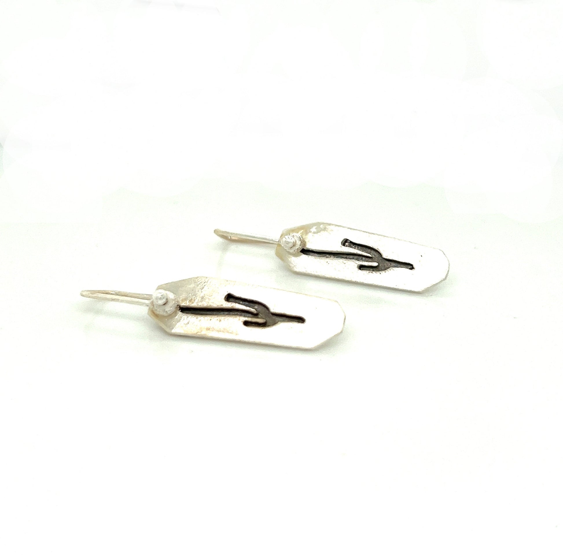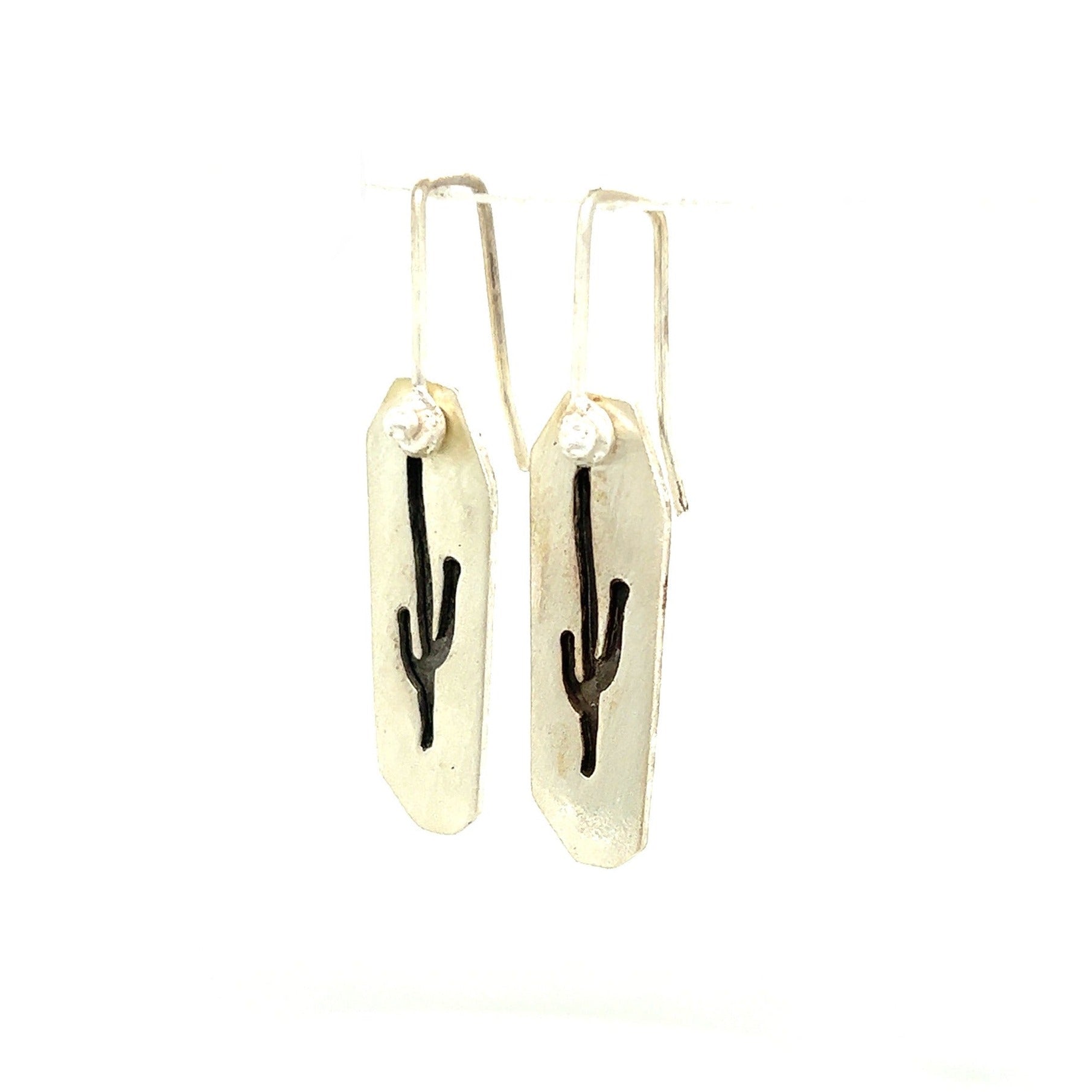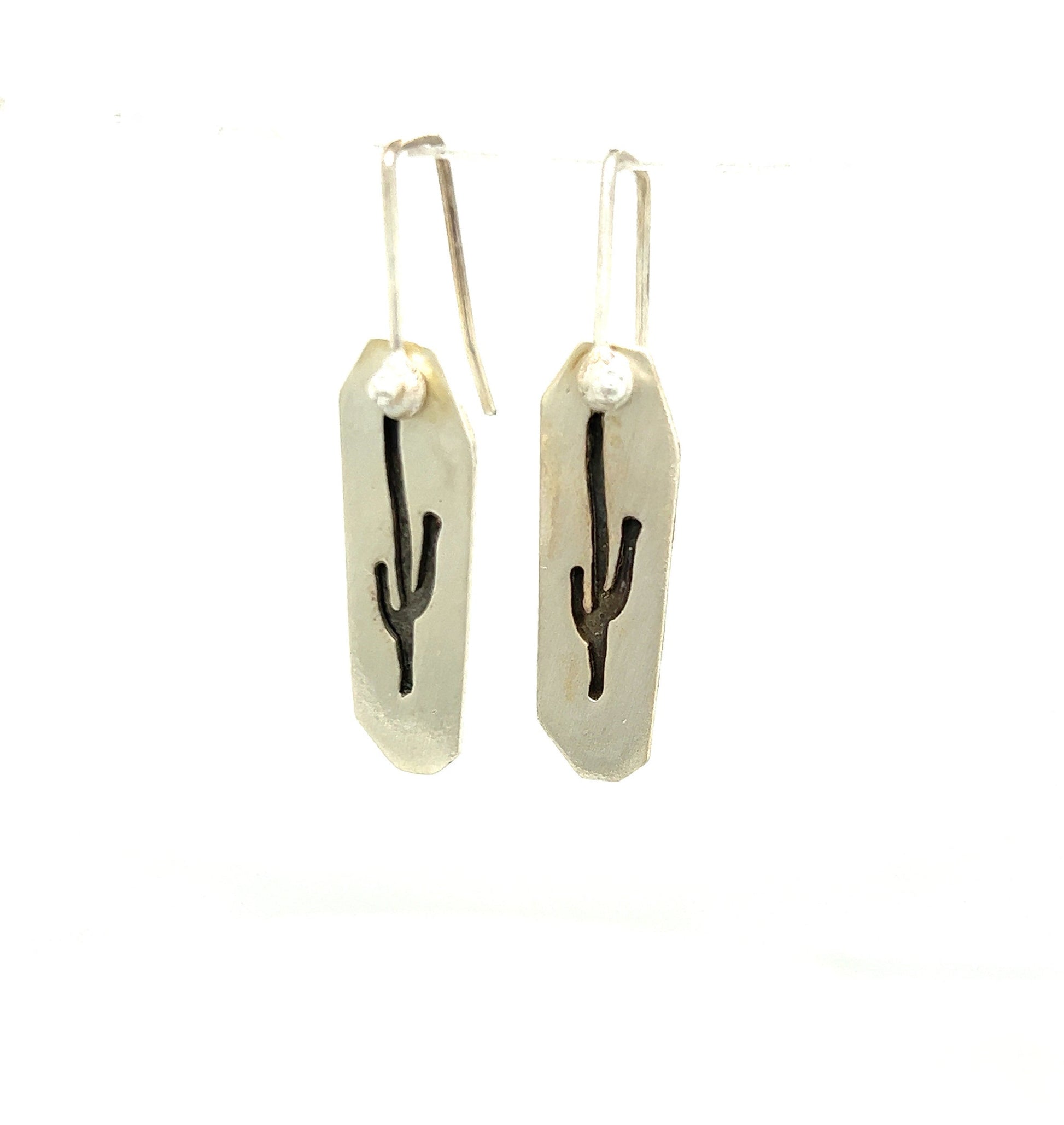 Hand-Cut Saguaro Earrings: Patina Finish & Solid Back Design