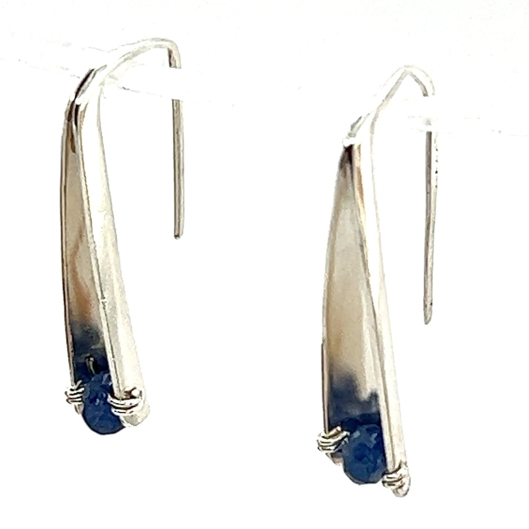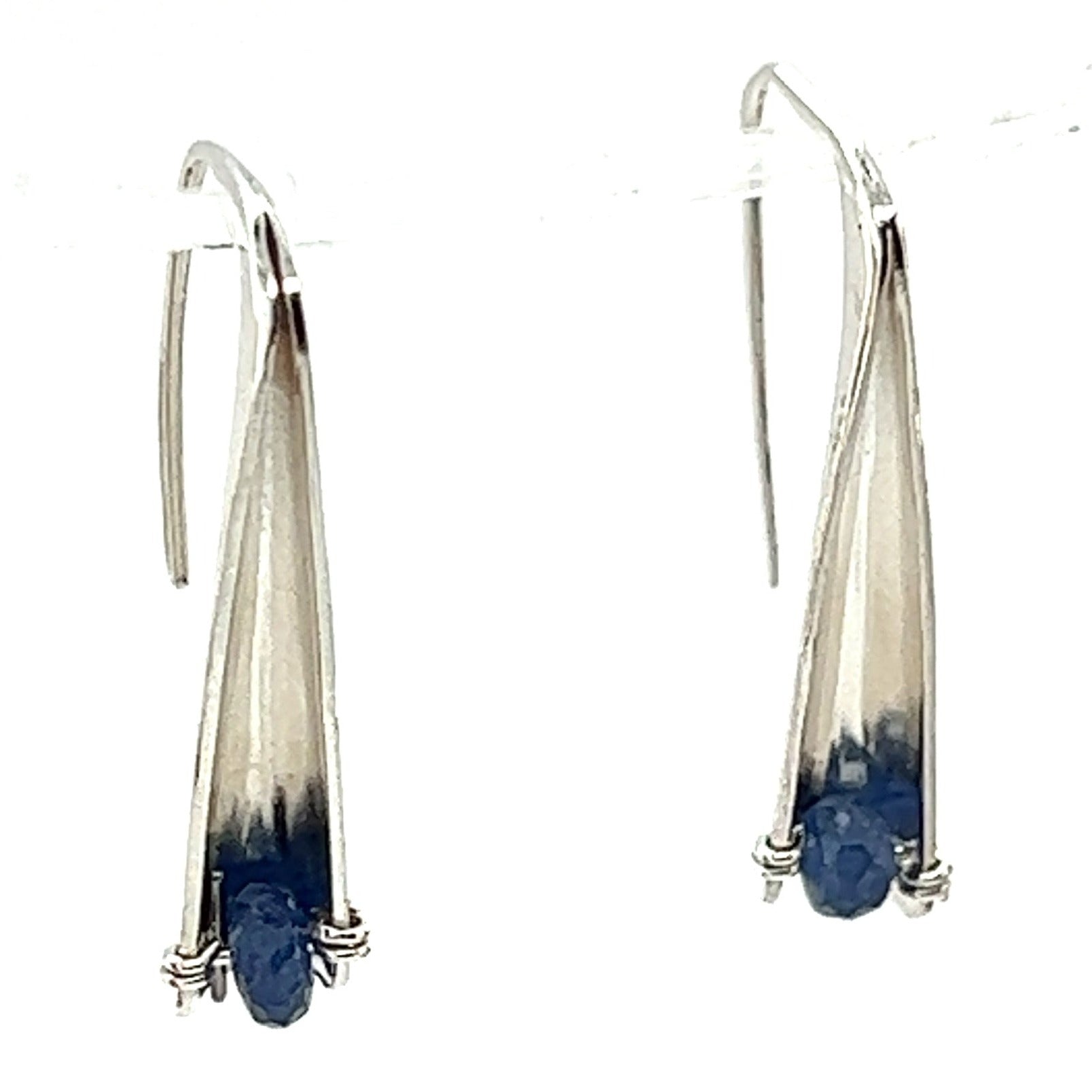 These aren't your average earrings. Crafted with the anticlastic raising technique, our Sapphire Bead Anticlastic Earrings transform the classic dangle into a captivating 3D sculpture. The continuous form gently curves around your ear, offering a comfortable, lightweight wear. Sparkling sapphire beads adorn the body of the earring, adding a touch of vibrant color and timeless elegance.