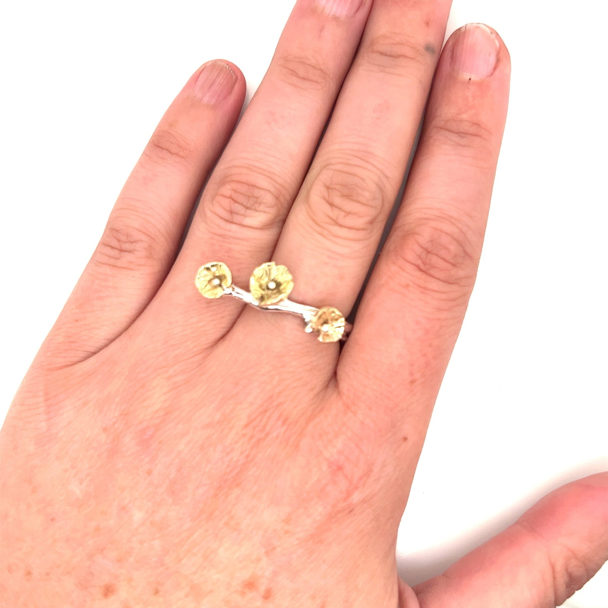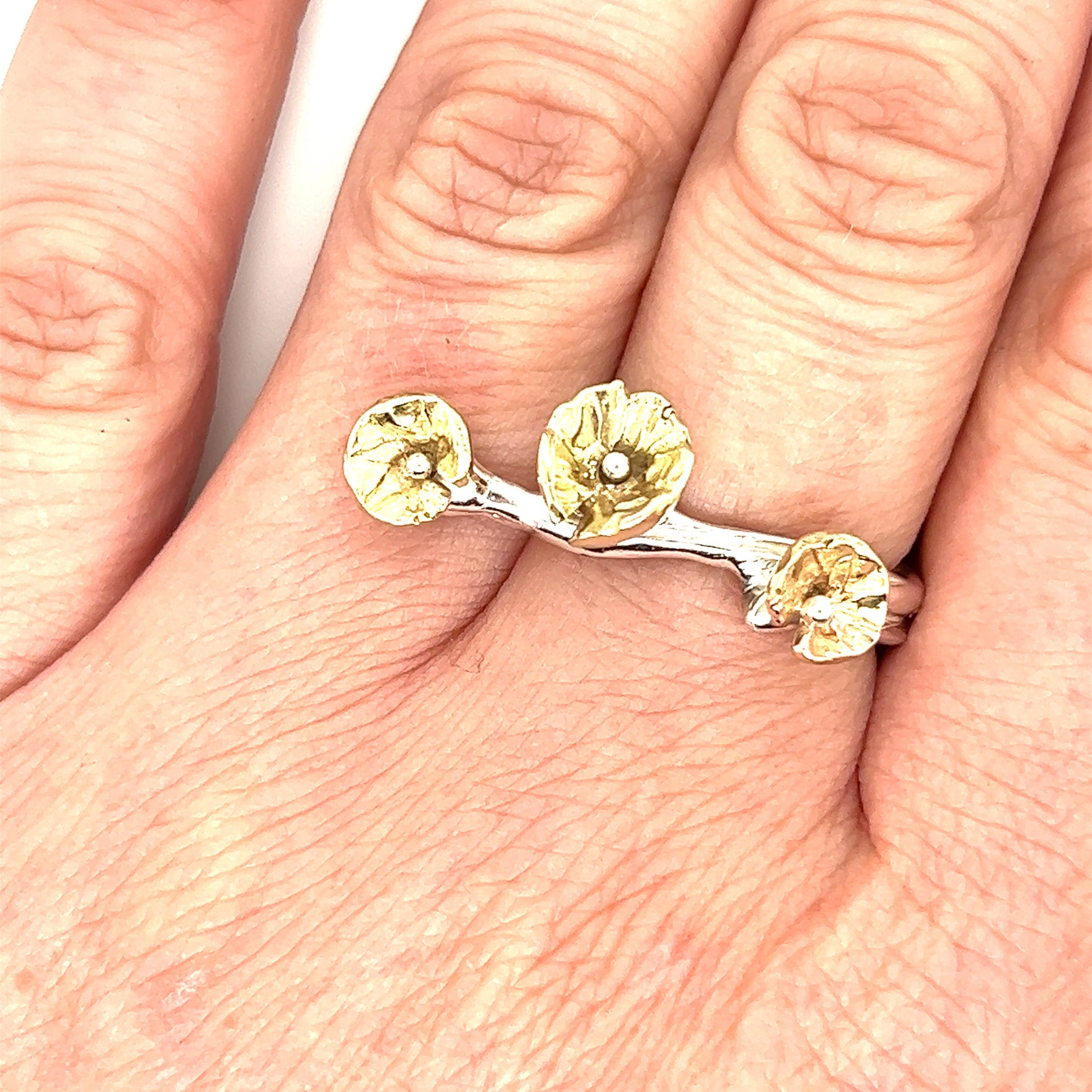 Small Poppy 2 Finger Adjustable Ring Gold and Sterling #244
