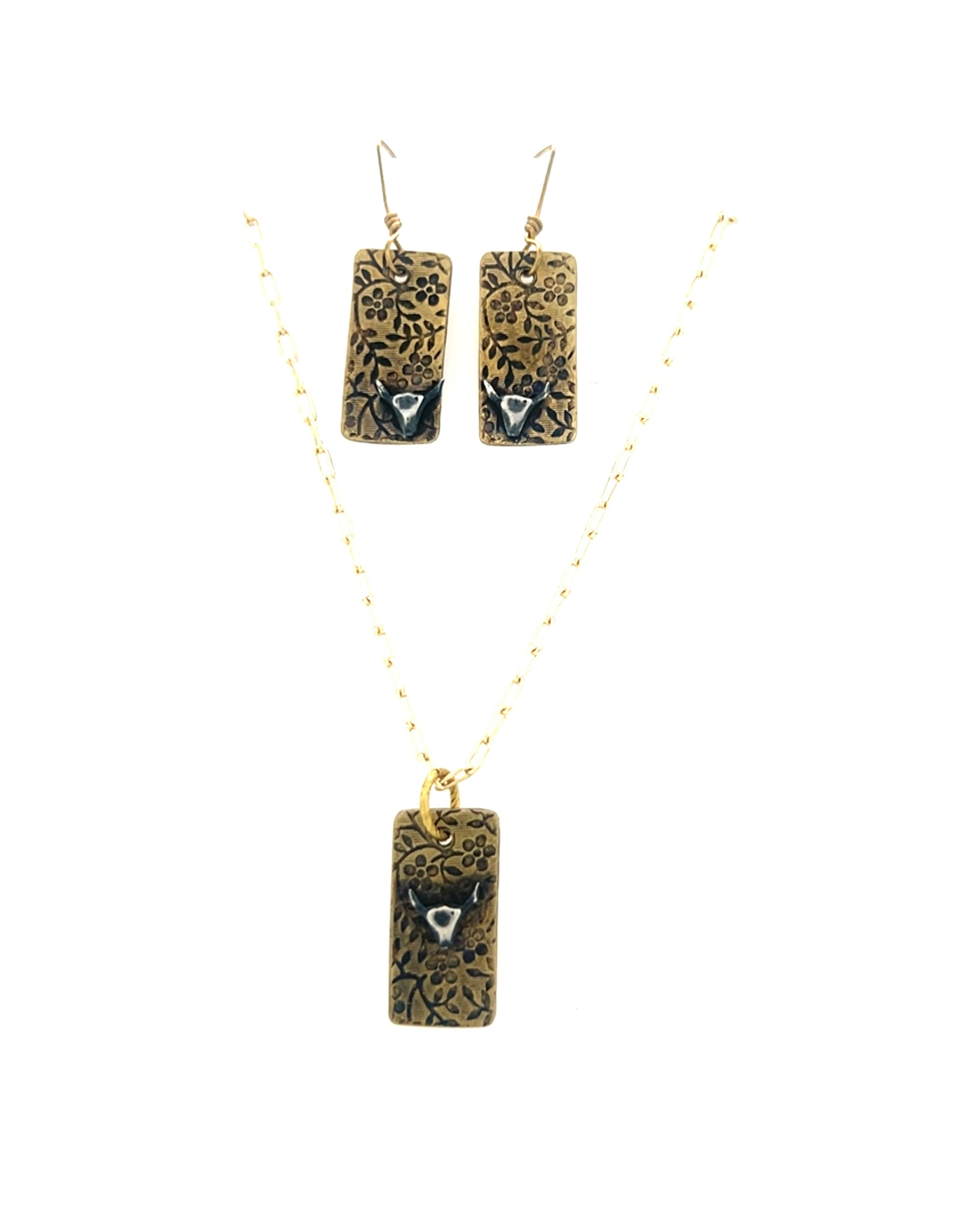 Elevate your style with the Toro Garden Necklace - a charming piece that adds a rustic touch to any outfit. The intricately engraved rectangular pendant showcases a raised longhorn accent at the center, giving it a timeless appeal. Perfect for layering or wearing on its own, this necklace makes a bold statement and complements any look, from boho to western-inspired. Crafted with durability and style in mind, it's a must-have addition to any jewelry collection.